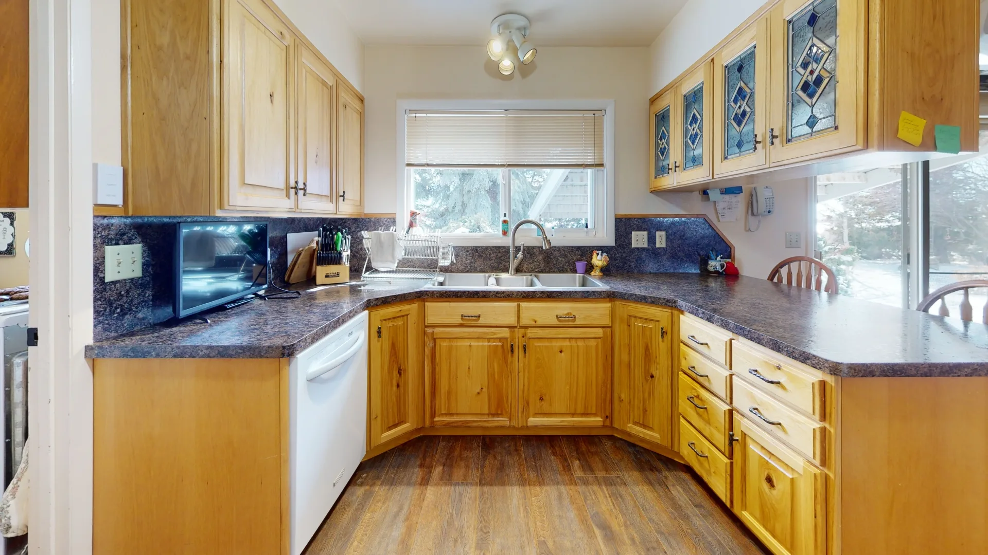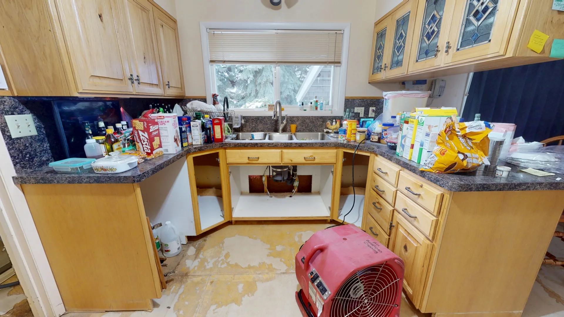 Summary: This home flooded as a result of a failed dishwasher line. In a relatively short period of time, the water migrated from the kitchen and spread in multiple directions, making its way into the dining room, living room, bathroom, bedrooms, laundry, and storage rooms. The water then entered the basement through the floor and stairway.